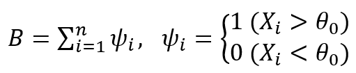 - b(α, n,½)는 표본의 크기 n, 성공확률인 베르누이의 이항분포 B(n, ½)의 상위 100α, 백분위수로 P(B ≥ b(α, n, ½))을 만족하는 값