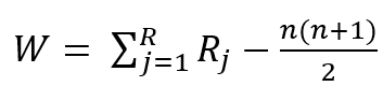 - 혼합 표본에 동점이 있을 경우 W는 동점 간 평균 순위 사용
