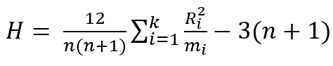 - H ≥ h(α, k, (1, 2, …, m))이면 H0를 기각