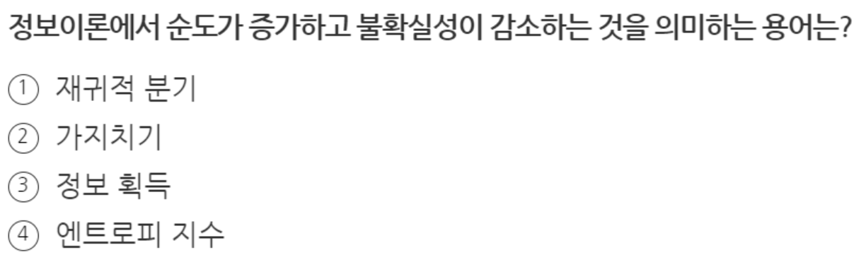 정보획득(Information Gain)에 대한 정의이다.(답 : 3)