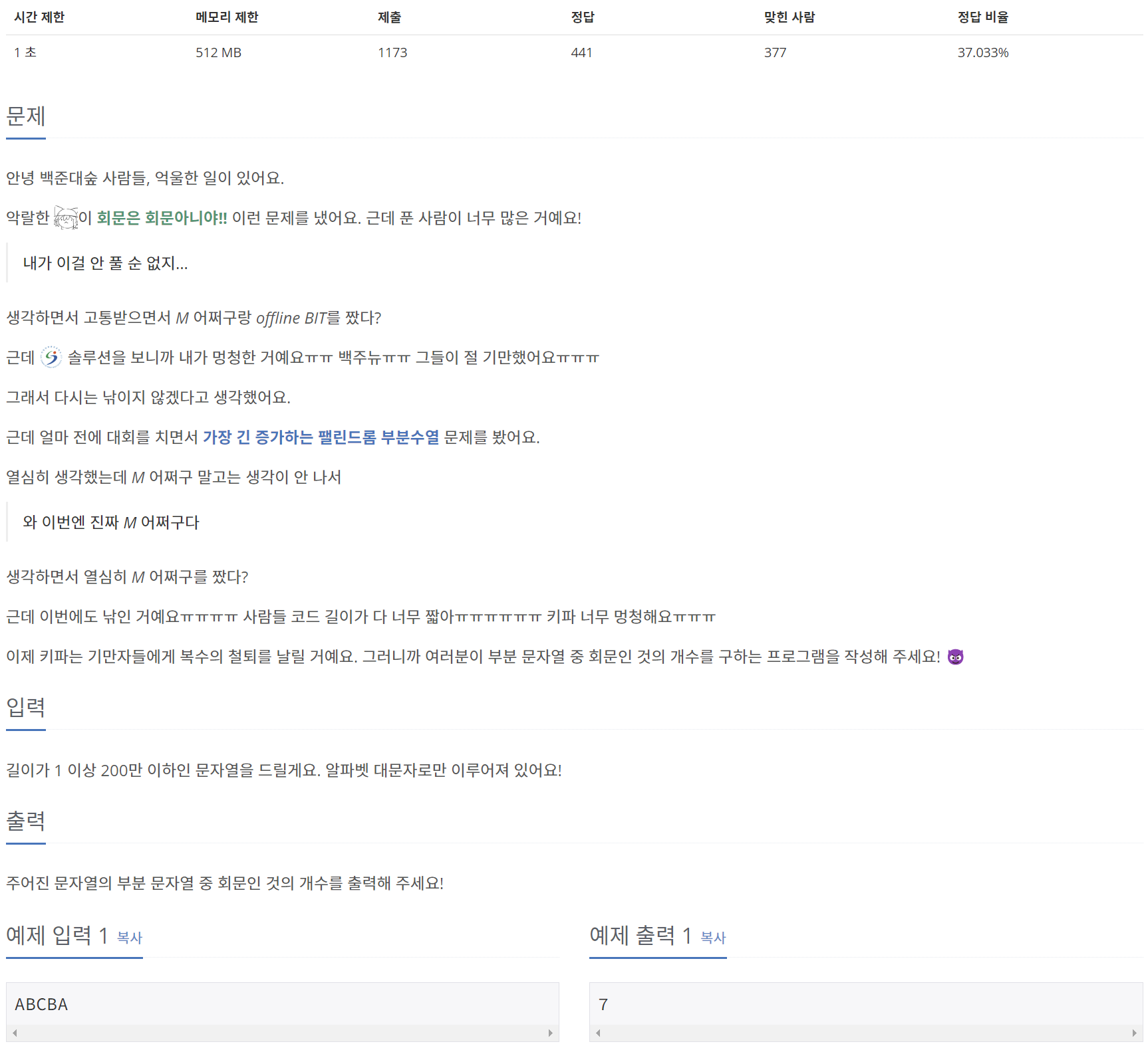 문자열 중에 회문인 것의 개수를 구하는 문제