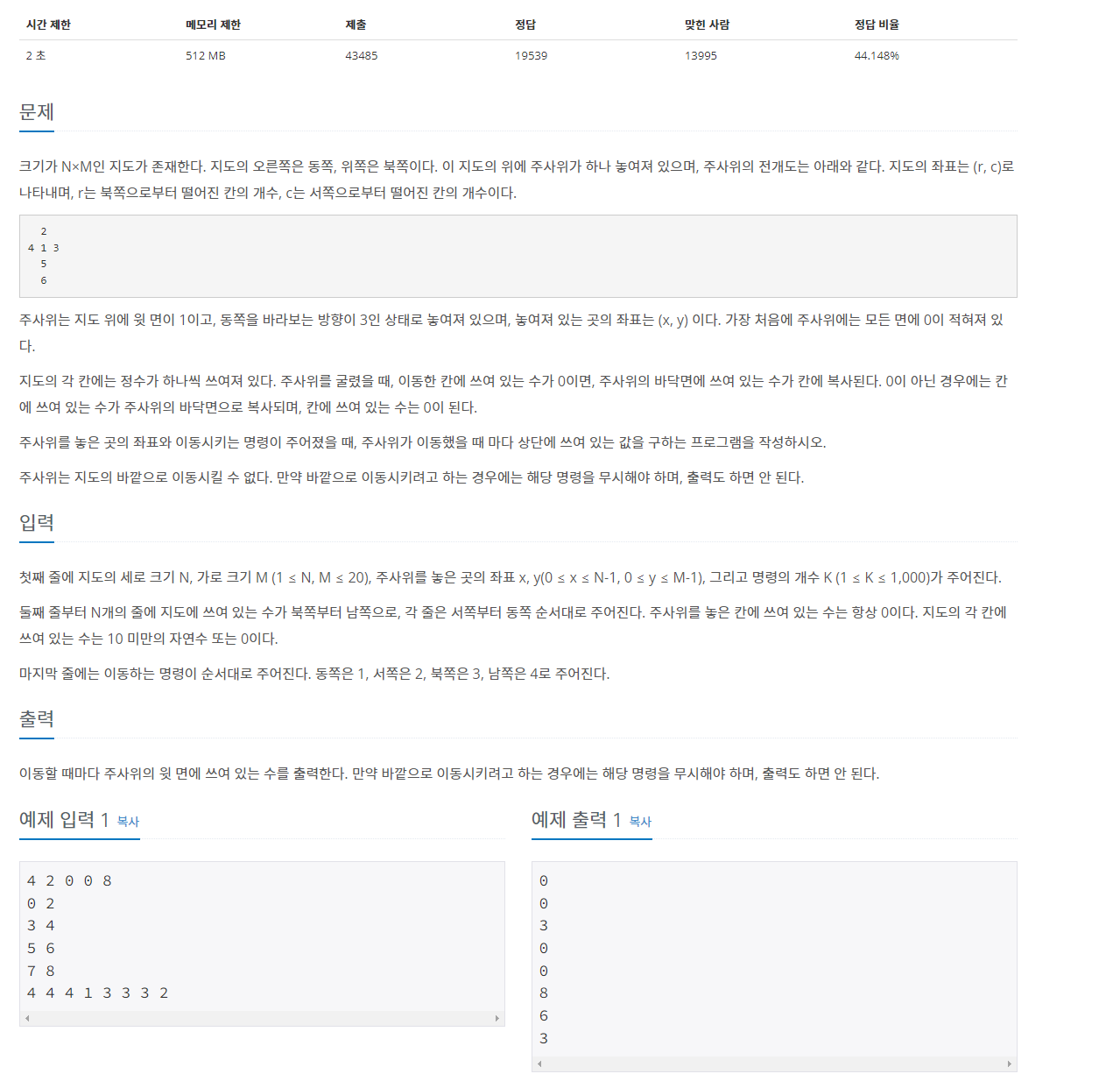 https://www.acmicpc.net/problem/14499