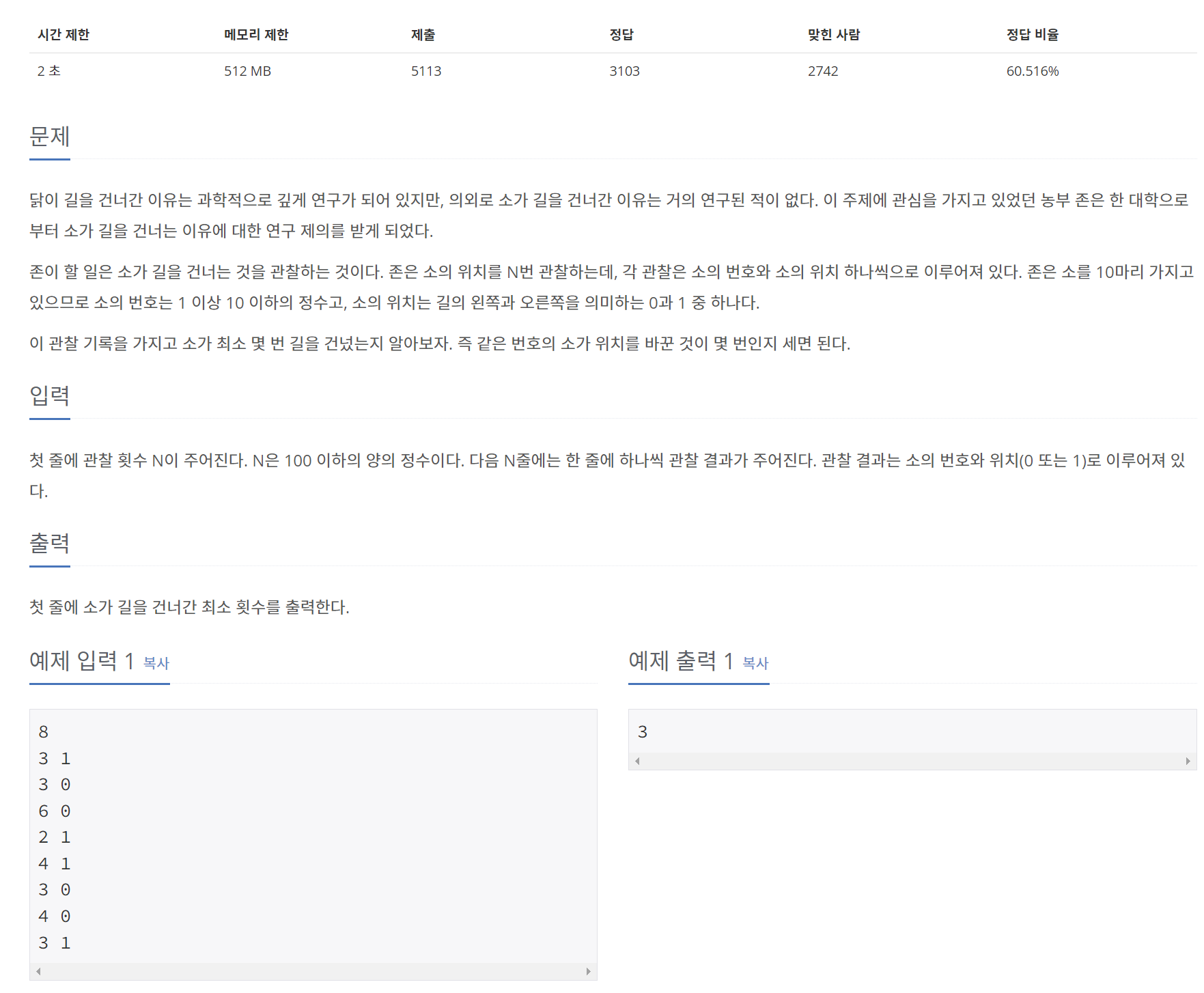 14467번: 소가 길을 건너간 이유 1