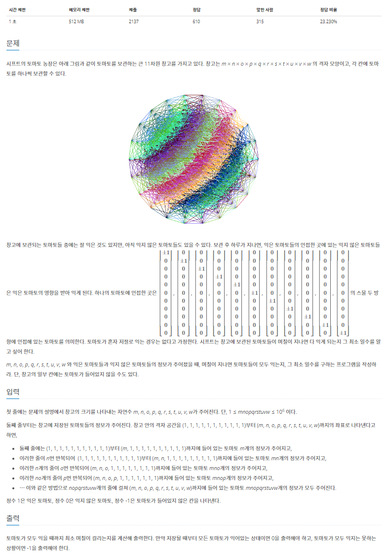 11차원 창고에서 토마토가 점점 익어갈 때의 최종적으로 토마토가 익는데 며칠이 걸리는지 계산하는 문제