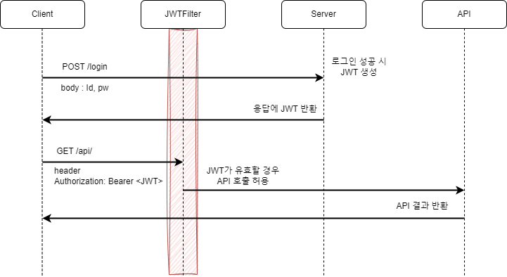 로그인 진행시 필요한 정보(id 등)를 담아서 요청할 필요가 있었다. 이를 원활하게 사용하기 위해 토큰에 인증 정보를 담아 전달하는 방식을 사용하는 JWT를 이용하는 방식이 이후 로직 처리에 있어 편리하게 동작할 것이라고 생각하여 세션과 쿠키 방식이 아닌 토큰을 통한 암화하는 방식을 이용했다.