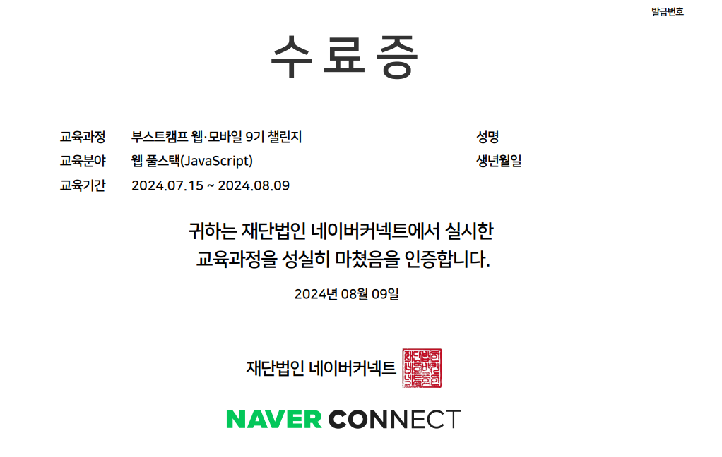 | [후기] 네이버 부스트 캠프 Web 9기 베이직, 1,2차 테스트 후기 (feat. 챌린지) (0) | 2024.07.11 |