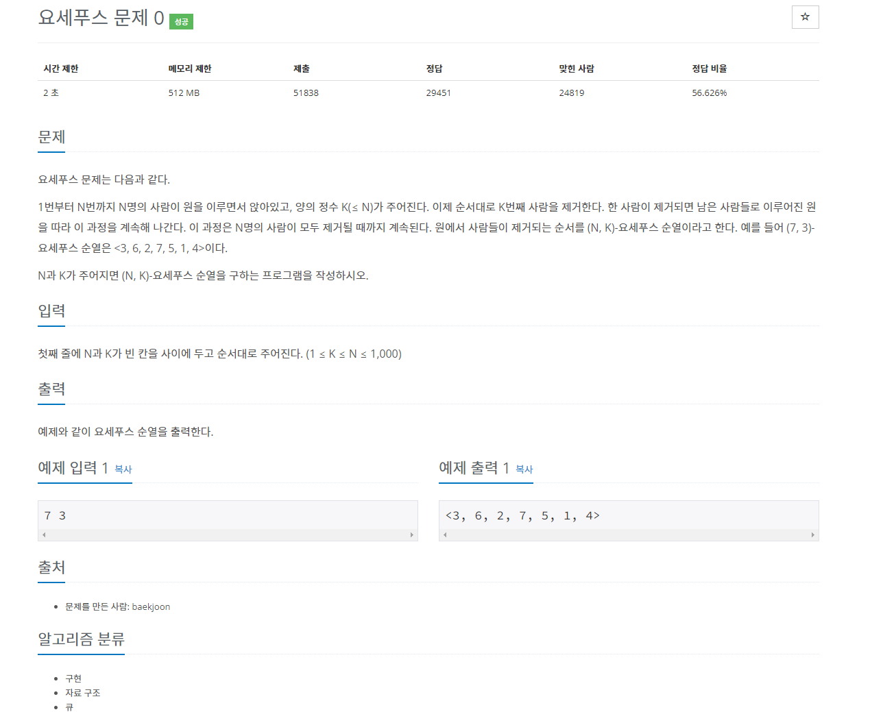 11866번: 요세푸스 문제 0