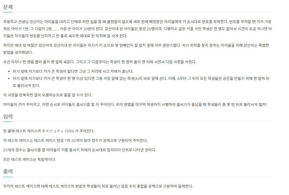 자기 앞에 자기보다 키 큰 학생과 자리를 바꾸는 횟수를 구하는 문제